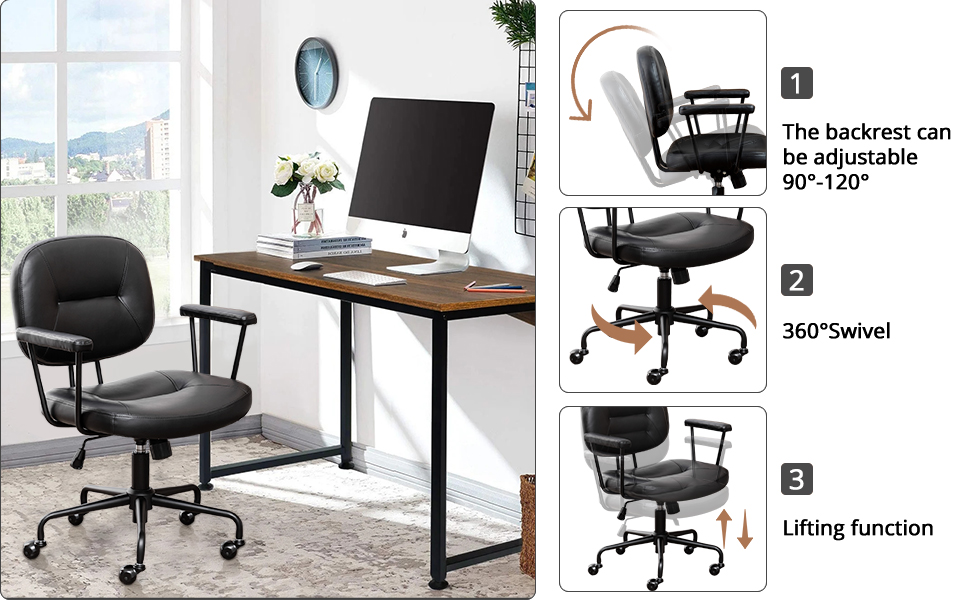 Amazon Com Black Leather Office Chair Ergonomic Mid Century Modern Office Chairs Rolling Desk Comfy Office Chair For Women Vanity Chair With Wheels Black Base Computer Work Chairs For Home Office Executive